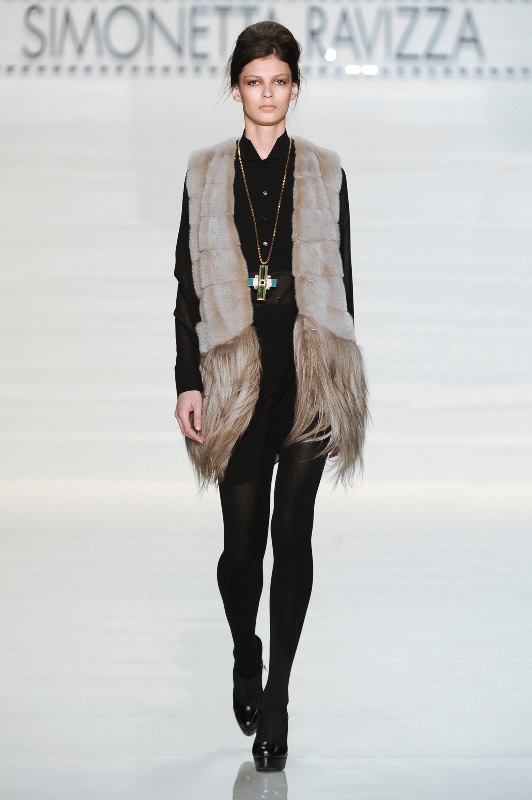 Il compito di aprire questa edizione di Milano Moda Donna spetta a Simonetta Ravizza, che riconferma la maestria con la quale lavora le sue famosissime pellicce.