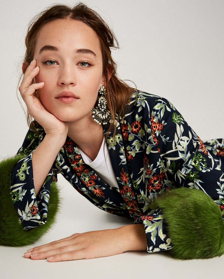 Zara A/I 2017-18 - kimono stampato polsini in pelliccia sintetica-blue version