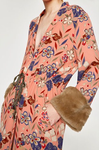 - Zara A/I 2017-18 - kimono stampato polsini in pelliccia sintetica-pink version