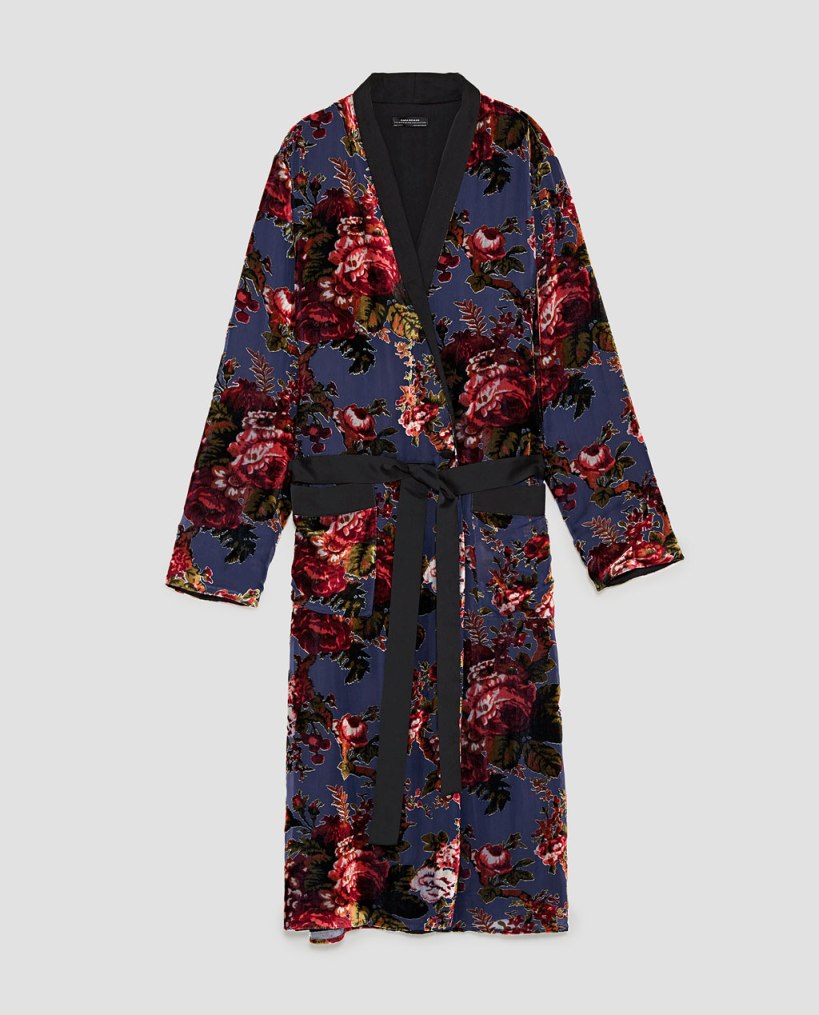 Zara reinterpreta il tradizionale kimono con un modello rielaborato e moderno intrecciando le caratteristiche del vero kimono giapponese con quelle delle vestaglie effetto pigiama, eleganti e sinuose.