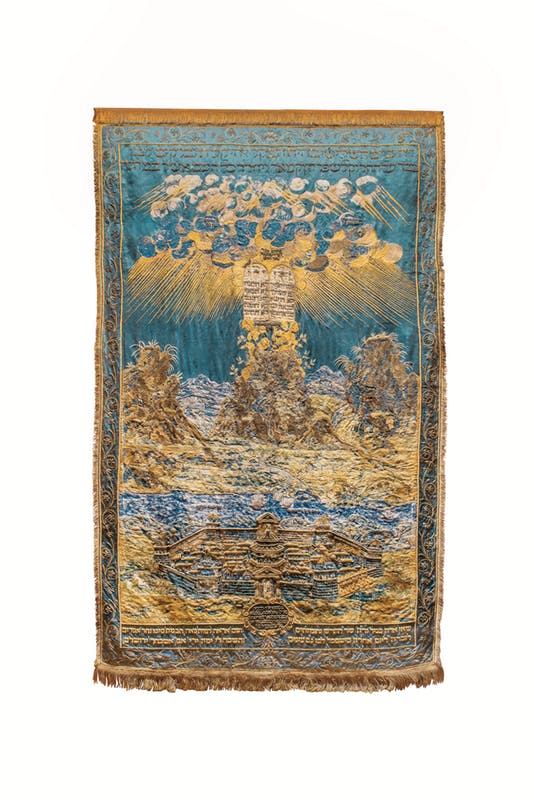 La linea-guida concettuale di questa rassegna ha un respiro socio-culturale molto ampio, in cui l’arte, la tradizione, gli eventi sono intrecciati metaforicamente e materialmente nelle trame dei manufatti. Tanta magnificenza di stoffe è esposta in un percorso che si articola in otto sezioni, a partire dall’epoca del Sommo Sacerdote Aronne per arrivare alla moda del Novecento e dell’imprenditoria tessile moderna, passando da temi quali il ruolo della scrittura come motivo decorativo, l’utilizzo dei tessuti per i paramenti delle sinagoghe, il ricamo come lavoro segreto, il ruolo della donna. E poi il tessuto come forma di affermazione sociale dei ceti più abbienti delle comunità ebraiche, che si spinsero ad apporre stemmi negli arredi per il culto, i legami commerciali e familiari con i Paesi del Mediterraneo e le conseguenti contaminazioni nello stile dei manufatti. Molto interessante anche la sezione dedicata all’emancipazione degli Ebrei nell’Ottocento e al loro ruolo sia di artisti sia di collezionisti di raffinati di tessuti, responsabili in ultima analisi del fiorire degli studi in quel campo (fino allora trascurato).