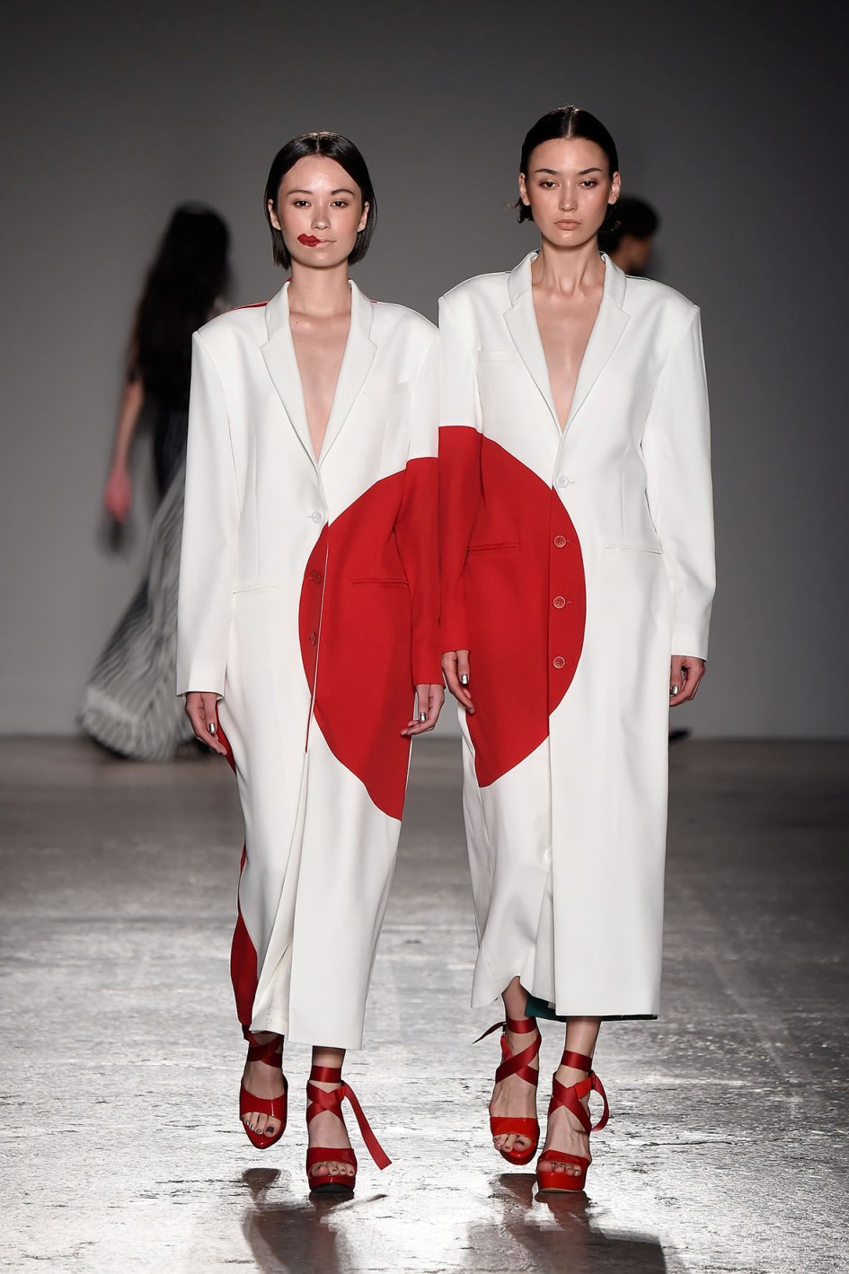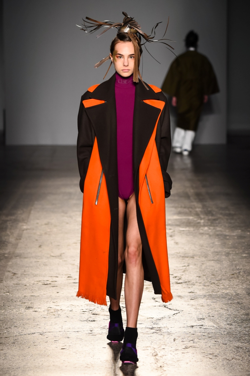 Atsushi Nakashima, questo giovane stilista giapponese già assistente di Gautier e direttore creativo di Jil Sander per alcuni anni, ama dar traccia di sé attraverso segni ben precisi -magnifica e di grande impatto emotivo l’uscita finale della scorsa “performance” settembrina con due indossatrici “calate” in un unico abito il cui fronte rappresentava la bandiera nipponica e il cui retro mostrava quella italiana!-.