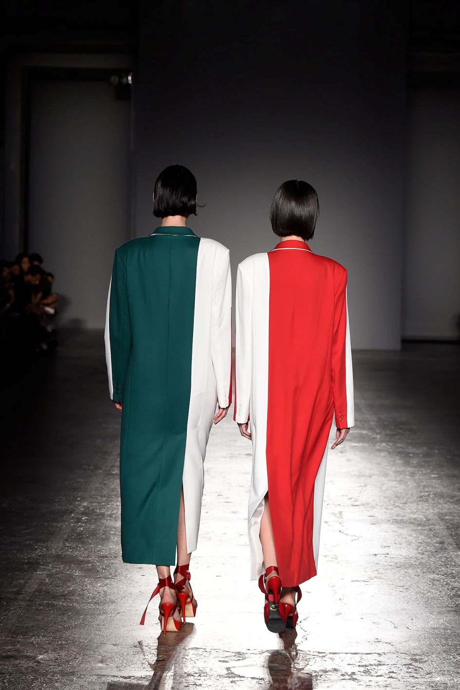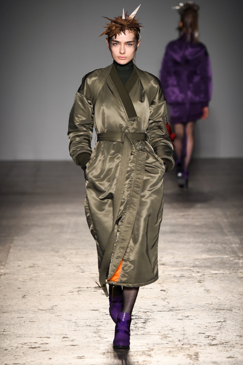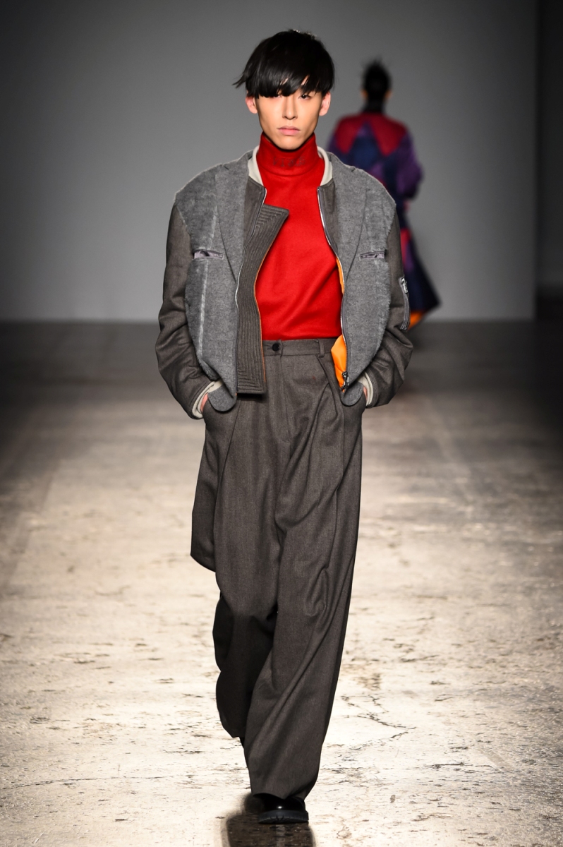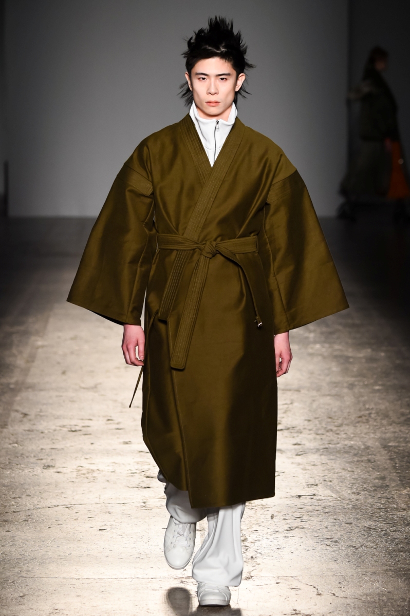 I kimono -fortissimo il legame dello stilista con la sua Terra!- si mescolano ai bomber -la foggia più (ri)vista in queste sfilate milanesi!- e ai lunghissimi cappotti che sfiorano il suolo.