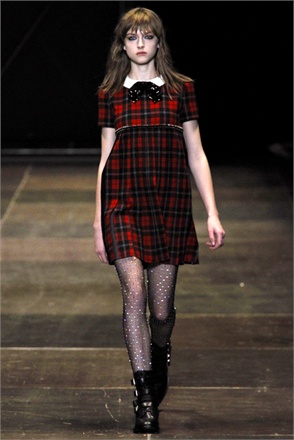 Passando al capitolo delle calzature, qui l’accessorio cult per tutti, signore comprese, è rappresentato dalle scarpe di foggia maschile: senza tacco e in morbido panno di lana, ma indurite da simboli militari o borchie da machos, come indica Christian Louboutin; in alternativa si può optare per lo stivaletto aperto (un vero cult di stagione) oppure accondiscendere alla tradizionale derby stringata da bohémien, mentre Miu Miu a sorpresa vira al grunge con scarpe provviste di maxi-suola e rifiniture argentate.