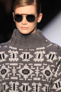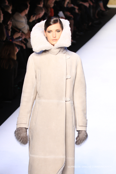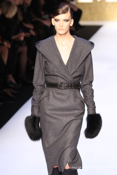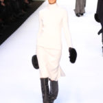 Tra gli accessori spiccano gli stivali alti in materiali diversi e i guanti, manopole in pelo, presenti ad ogni uscita e spesso occhiali scuri da solo, pur trattandosi di una collezione invernale.