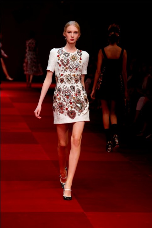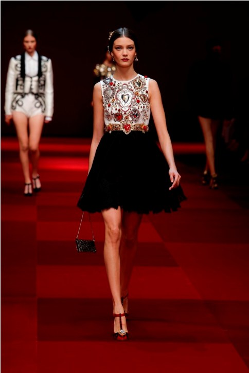 Le collezioni Dolce&Gabbana possono piacere o no, certamente restano nella memoria . Suscitano emozioni che possono andare da una assoluta ammirazione ad una assoluta irritazione. Dipende dalla sensibilità. Il loro è un prodotto semplice; da un punto di vista creativo non ha particolari pregi. Il duo di stilisti non manifesta speciali capacità ad esplorare forme nuove, innovative linee, tagli o volumi o di modellare il tessuto. Bisogna però dire che sono bravi a spettacolarizzare il loro prodotto; a caricarlo di suggestioni che attingono a man bassa da tradizioni culturali o popolari che non sono una semplice fonte di ispirazione ma una miniera da cui rubare figure, immagini, rappresentazioni. Poi il tutto è rappresentato –esasperato- sulla passerella o nelle immagini delle campagne pubblicitari di grande effetto e impatto.