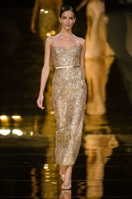 Un elogio sincero alle grazie femminili, uno chic languido, suadente, sapiente e a tratti irriverente. Abiti preordinati ad enfatizzare le curve e la morbidezza del corpo, armoniose sinfonie, contemplate per rilasciare sprazzi di luce da ogni angolazione.
