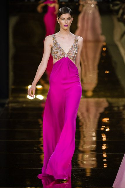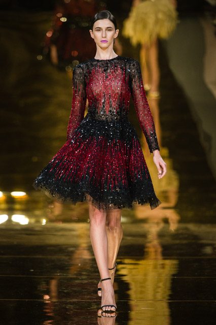 Questa relazione tra abiti sontuosi, decori preziosi e festosità , richiama gli echi gai e leggeri del glamour nel periodo d’oro di Hollywood, ma anche il periodo folle dello Studio 54, la famosa discoteca di New York, spesso celebrata dal couturier quale fonte di ispirazione per le sue collezioni