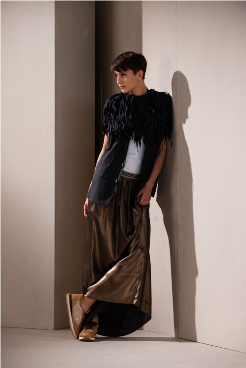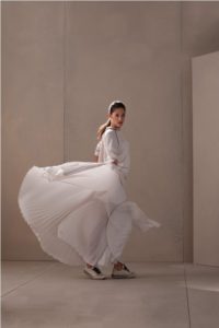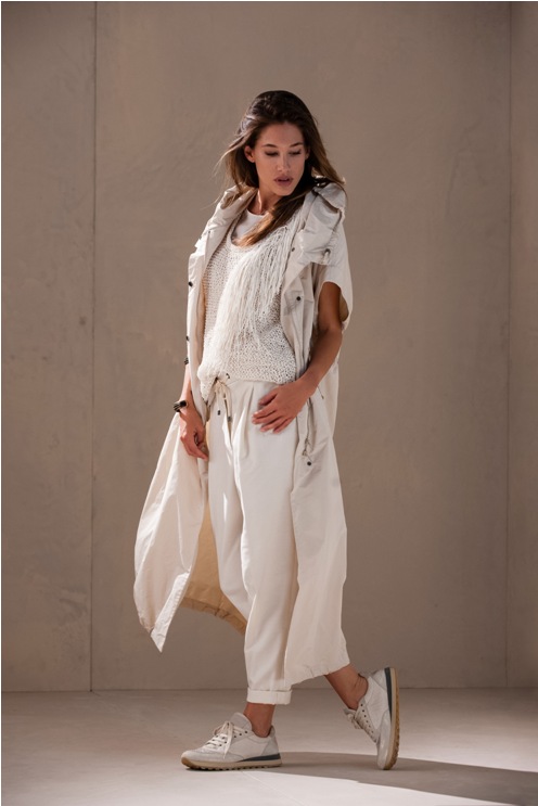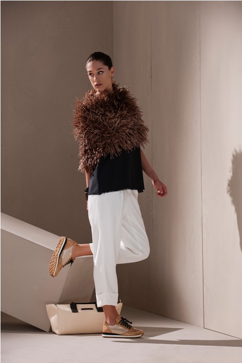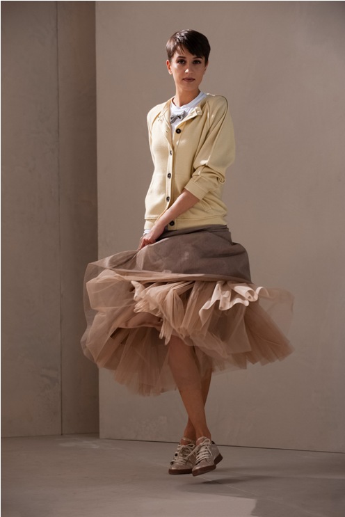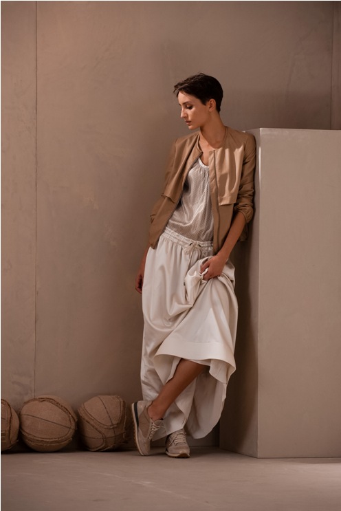 La prossima primavera/estate, la donna di Brunello Cucinelli troverà nel suo guardaroba capi preziosi ma facili da indossare, scoprirà che il giorno e la sera saranno perfettamente intercambiabili, proverà il gusto di indossare gonne di tulle con divertenti sneakers luccicanti pronte a sdrammatizzare e a incuriosire.