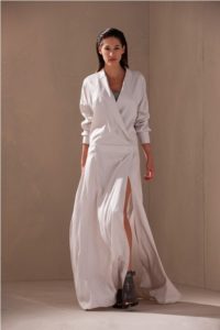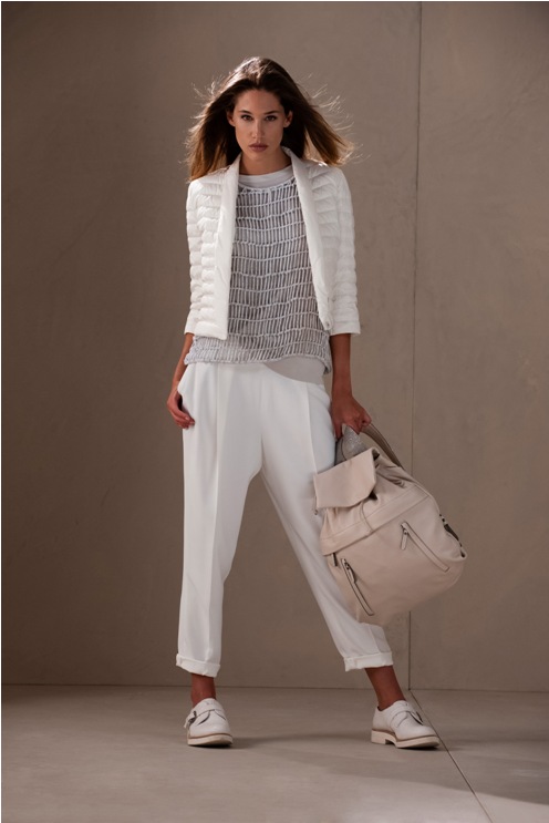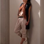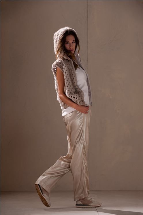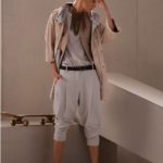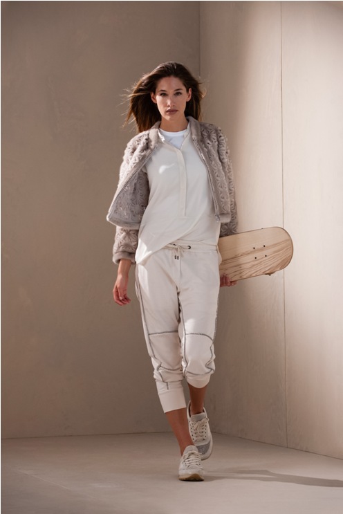 Avrà a disposizione capi aperti e adatti a un nuovo modo di vivere il tempo libero (che non si staccherà più di tanto da quello “impegnato”, in una sorta di continuum trasversale e facile da interpretare e da fare proprio) indossando tute fluide, maglie e felpe dai volumi sia ampi che minimali spesso accostate a gonne o pantaloni dalle fogge svariate -molto presente il rimando all’etnico e al fitness-, piccoli capispalla in camoscio, impalpabile piuma, aeree garze di lana, visone lavorato a traforo……..