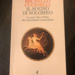 Ci piace però concludere, per dare merito di enorme lungimiranza a questo amante indefesso della bellezza (quella bellezza che, secondo un’altra figura elevata quale è Angelo Casati, vive e si rigenera grazie “ai ricercatori di fessure, di soglie segrete, di fili pressoché invisibili. Soglie non tanto da varcare con animo predatorio, ma su cui sostare, da cui intravvedere e provare emozione, commozione.“), con quelle pregnanti righe dedicate alle due figlie che Brunello ha scritto a introduzione del suo libro “Il sogno di Solomeo”, uscito nel 2018 in tempi certamente non sospetti: