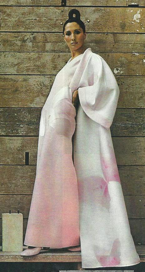 Il gusto asiatico per i tagli e i drappeggi, per gli splendidi ramages, per i bouquet floreali o per le stampe irreali e suggestive, corre senza eccezione nelle collezioni del pret-à-porter e dell’haute couture da sempre. A partire dall’innovatore parigino Paul Poiret in piena era decò, passando per Chanel, Saint Laurent, Cardin, Mila Schön, Fendi, Ferrè, Krizia, Armani, Prada. L’impeccabile e raffinata ricercatezza nell’abbigliamento, nei ricami dei tessuti, negli accessori e nelle acconciature, ha reso celebri ed immortali alcuni abiti che hanno fatto la storia del costume, come la collezione autunno/inverno 1971 “Kimonomania” di Ken Scott che presentò cappotti in seta nera ricamati con maschere del teatro tradizionale giapponese.