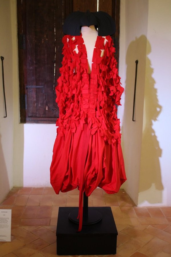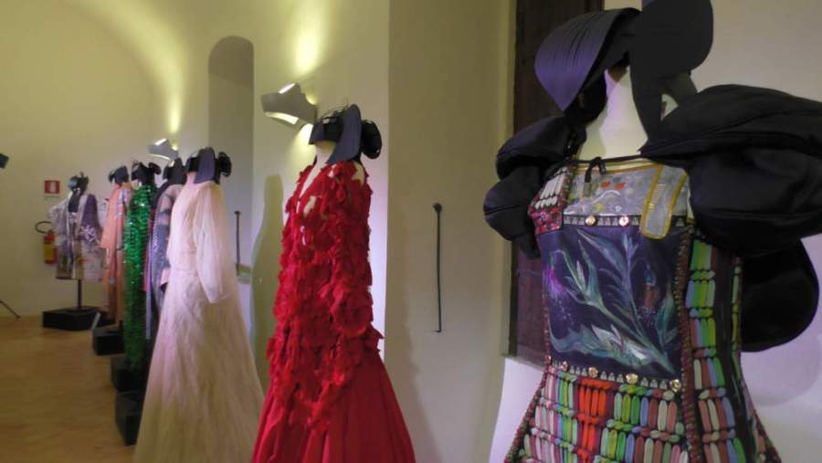 Affascinante e raffinata, la scenografia ‘naturale’ delle sale appena restaurate del Castello di Santa Severa a Roma che offre un percorso narrativo di impatto e che si palesa nel prestigio delle forme dei costumi storici e delle visioni contemporanee dai lineamenti marcati e distintivi degli stilisti, tra cui spiccano Antonio Marras, Guillermo Mariotto per Gattinoni Couture, Comme des Garçons, Maurizio Galante, Issey Miyake e Yohji Yamamoto.