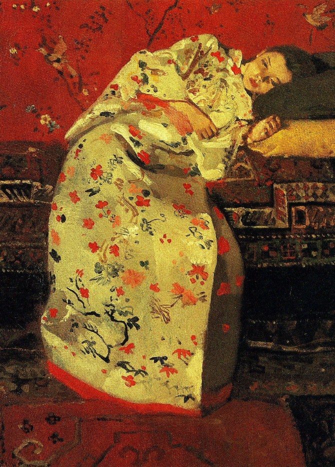 Chi non è rimasto ammaliato e sedotto dalla sensualità esotica risvegliata dalla Giapponese di Monet, dalle Ragazze con kimono di Breitner o dalla Signora con ventaglio di Gustav Klimt!