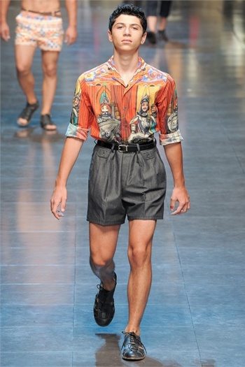 In effetti è proprio quest’ultimo capo – il bermuda – uno dei più ricorrenti sulle nostre passerelle (con poche eccezioni, tutte al femminile: Frida Giannini per Gucci, Miuccia Prada e Anna Zegna), declinato in molteplici varianti: dai boxer ai trunk, dai pinocchietti agli shorts. Non propriamente bon ton, a mio modesto parere, anche se ad indossarli è un super-modello statuario; ma si sa che la moda, come la storia, è fatta di corsi e ricorsi, cicli e ricicli.