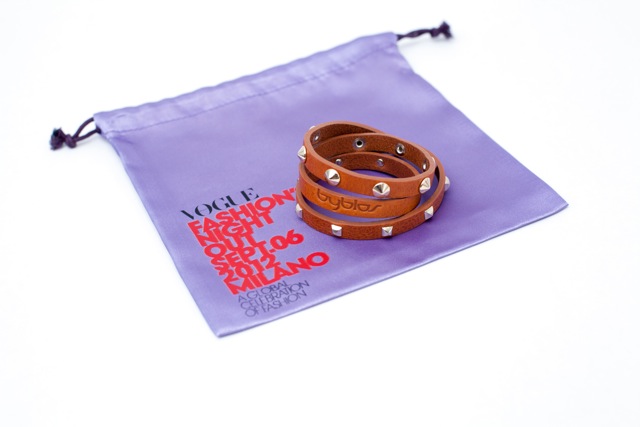 Byblos ha creato invece uno special product in limited edition dall’animo rock e sofisticato, estremamente moderno: un bracciale in pelle decorato da borchie very strong. L’intero ricavato della vendita del bracciale sarà devoluto ai territori e alle popolazioni colpiti dal terremoto in Emilia per dare un segnale forte ed essere di aiuto concreto per la ricostruzione.