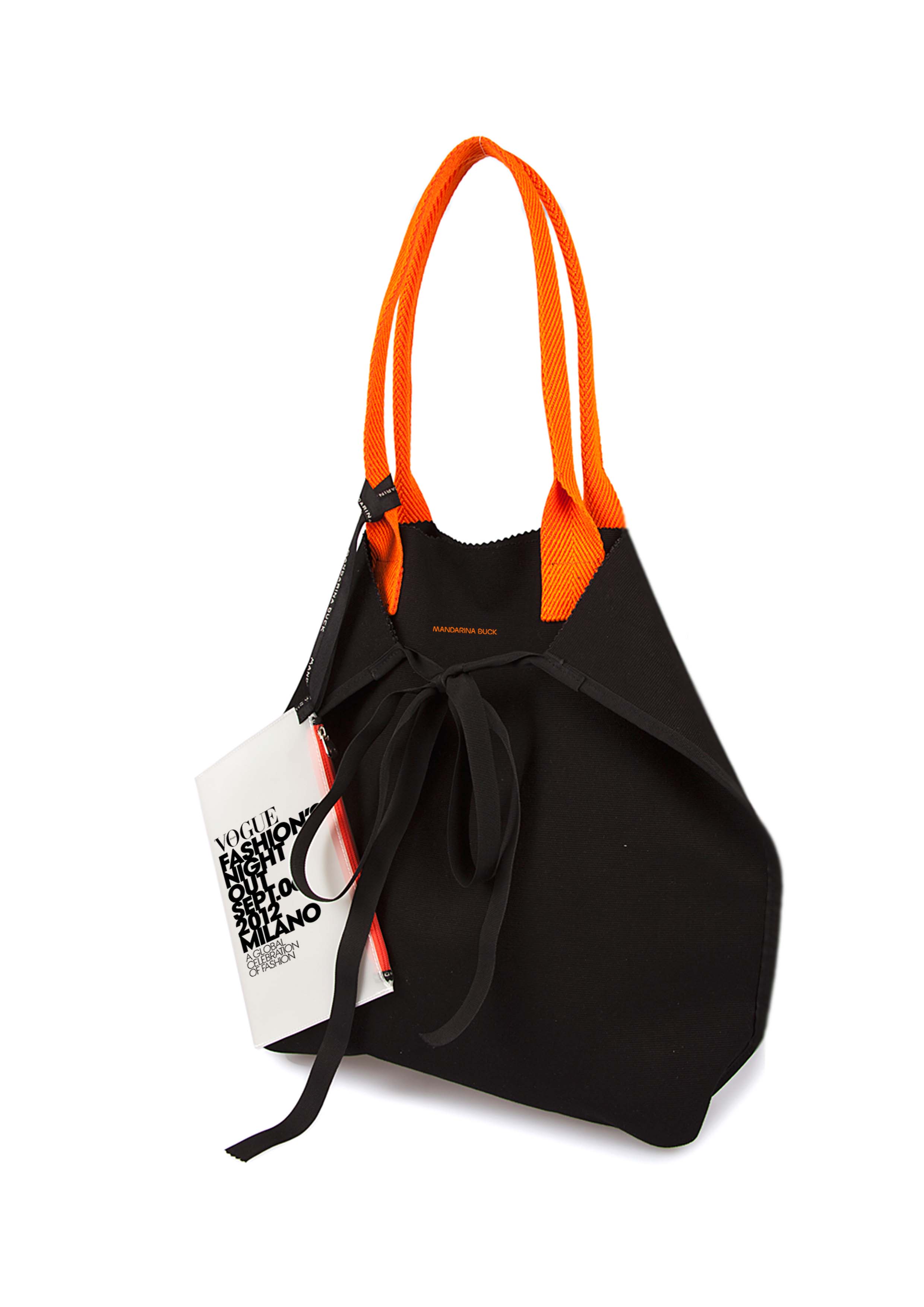 Mandarina Duck dedica alla Vogue Fashion’s Night Out la nuova shopper MD in Vogue una limited edition acquistabile presso i flagship store di Milano, al civico 8 di via Verri, e in via Due Macelli 59 di Roma. Una shopper leggera e reversibile, realizzata in cotone spalmato e canvas naturale con manici a contrasto, proposta in tre varianti colore nera con manici arancio fluo; verde con manici gialli; beige con manici viola. Parte del ricavato delle vendite della MD in Vogue andrà in aiuto alle popolazioni dell’Emilia Romagna e della Lombardia.