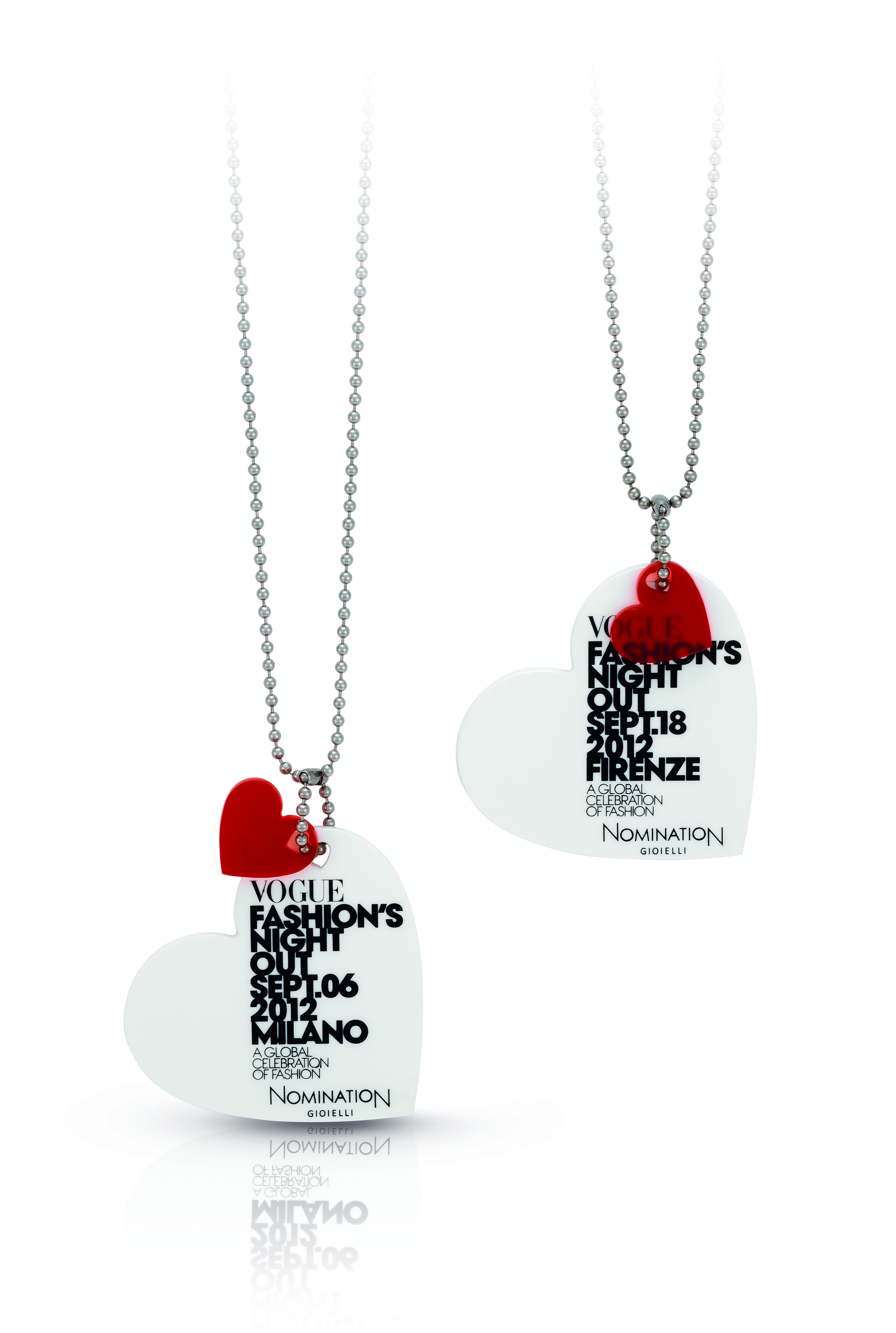 Nomination, leader mondiale nella gioielleria in acciaio e oro, festeggia i suoi 25 anni durante la Vogue Fashion Night Out a Milano. La boutique Nomination di Corso Venezia sarà la cornice di questo appuntamento per il quale è stato creato un gioiello in limited edition: una splendente catena in acciaio lucido che unisce due cuori in plexiglass, uno bianco e uno rosso, con il logo e la data della VFNO, a ricordo dell’evento. L’intero ricavato della vendita del gioiello sarà devoluto ai territori e alle popolazioni colpiti dal terremoto in Emilia per dare un segnale forte ed essere di aiuto concreto per la ricostruzione. Durante la VFNO sarà possibile anche ammirare la nuova collezione del brand realizzata totalmente in argento, la Silvershine Composable Collection.