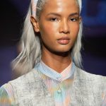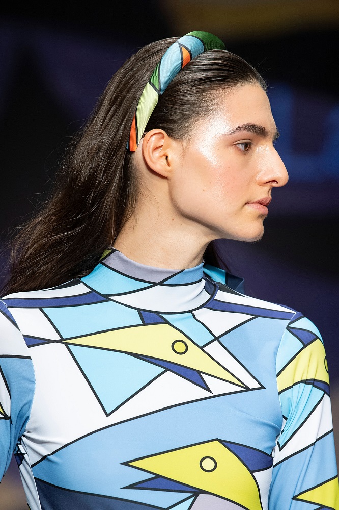 Universalmente riconosciuto come l’ornamento romantico per eccellenza, femminile, adolescenziale e bon ton, il cerchietto flessibile a ferro di cavallo viene rivisto da Lavinia Biagiotti Cigna con colori e masse completamente nuove, anzi “futuriste”. Dunque via glitter, fiorellini o passamanerie e sì a tendenze avanguardiste fatte di dimensioni appariscenti e cromie vivide. Il pattern? Lineare e geometrico; dalle righe intrecciate ai rombi, dai quadretti all’intramontabile principe di galles.