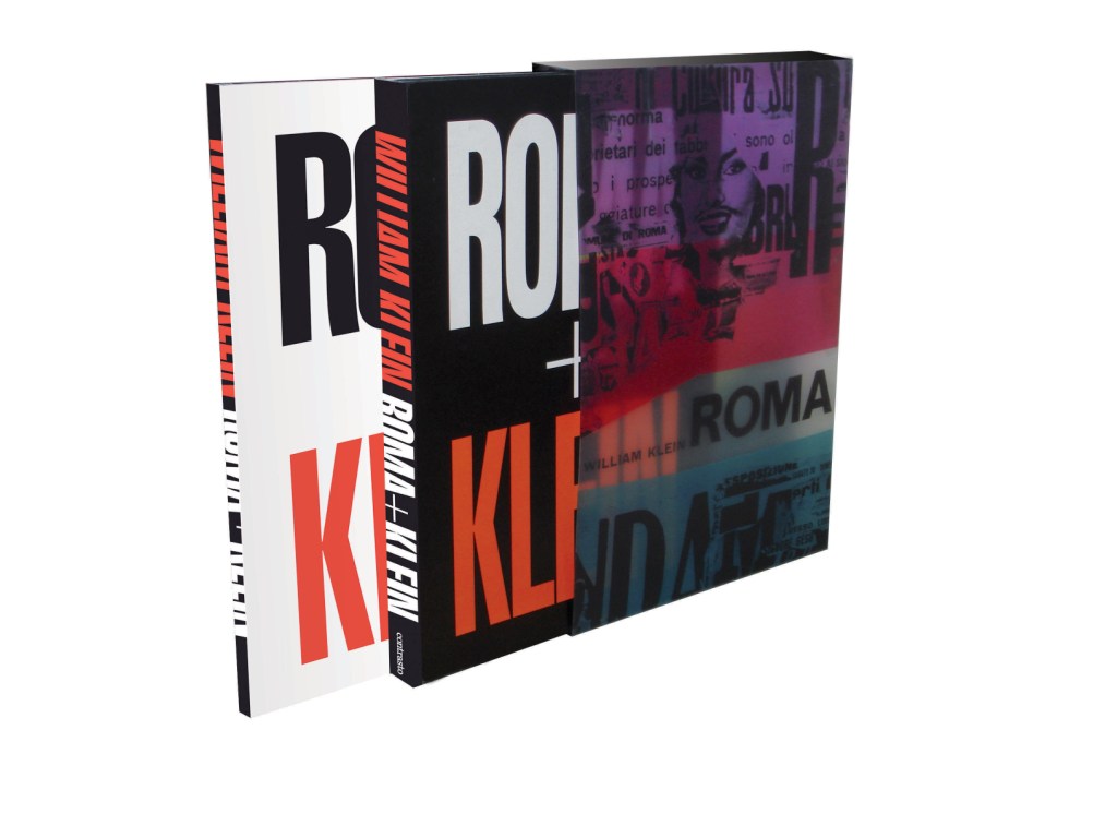 Era il ’56, Klein arriva nella capitale per collaborare come aiuto regista di Federico Fellini sul set del film “Le notti di Cabiria”. E’ reduce dall’uscita, non priva di polemiche, del libro “Life is Good and Good for You in New York“, uno dei testi più significativi nella storia della fotografia. Lo slittamento delle riprese della pellicola di Federico Fellini, lascia il tempo all’artista statunitense, di girare per Roma con la sua macchina fotografica, in compagnia del regista di “8½” e di altri intellettuali del calibro di Pier Paolo Pasolini, Alberto Moravia e Ennio Flaiano. Nasce un diario vivido della città, un potente racconto per immagini, pubblicato per la prima volta nel 1959. A circa mezzo secolo di distanza la casa editrice Contrasto ha realizzato una nuova edizione di “Roma”, includendo immagini inedite di moda, oltre a una versione aggiornata dei testi. “Roma+Klein” comprende un volume fotografico e un volume esplicativo, con scritti di Klein e citazioni sulla città di celebri viaggiatori come Stendhal, Henry James, Michelet, Charles Dickens. Uno speciale cofanetto in PVC accoglie la pubblicazione e cita la copertina originale del libro.